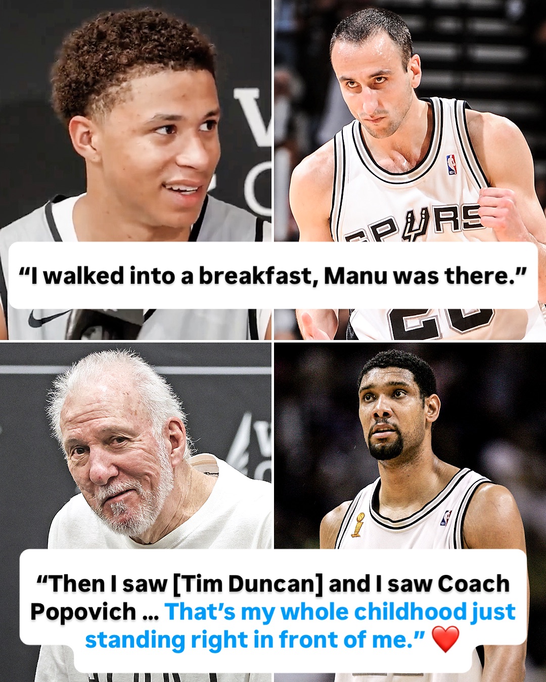 “当我走进食堂吃早餐,马努就在那里。然后我看见了邓肯,我又看见了波波教练。我的天呢,我的整个童年就这么展现在我眼前。”卡特-布莱恩特说道。